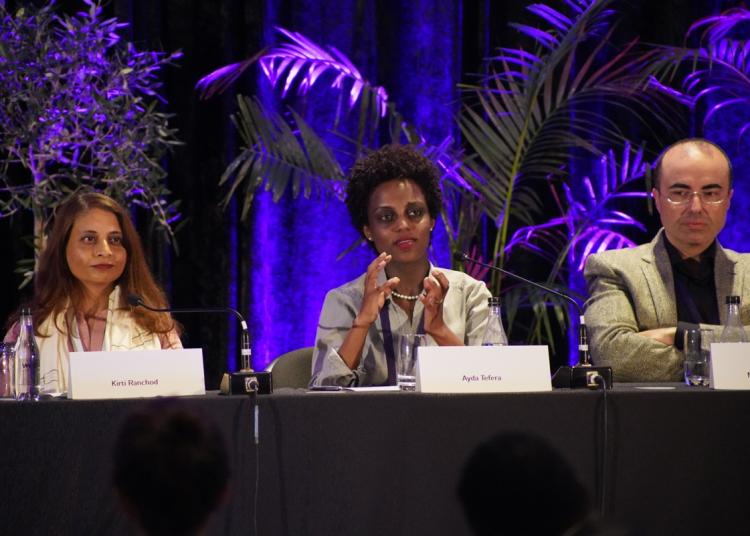 Above left: Brain Lawlor with award winners, Geeta Dorkhy and Alex Kornhuber | Right: Atlantic Fellow panelists Kirti Ranchod, Ayda Tefera and Mohamed Salama.